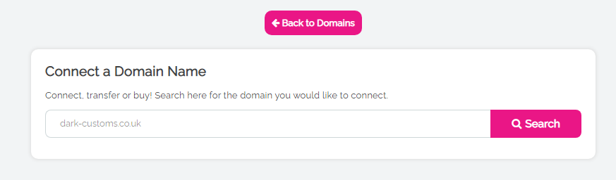 4. You will then see a search bar to enter your domain name. This will start the connection process or you can search for available domain names.